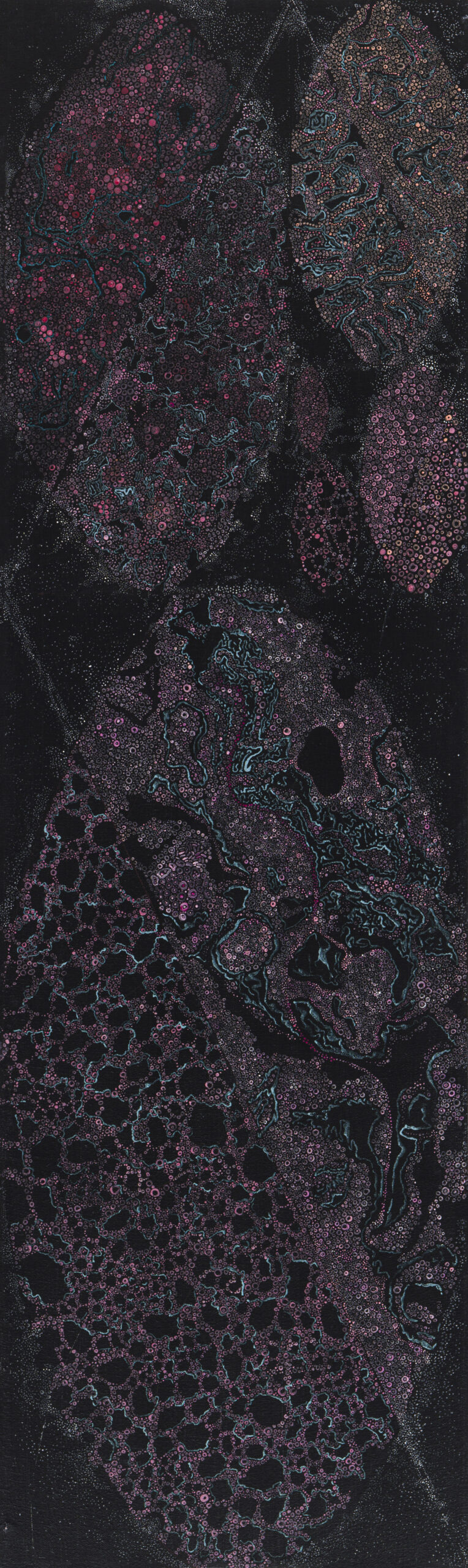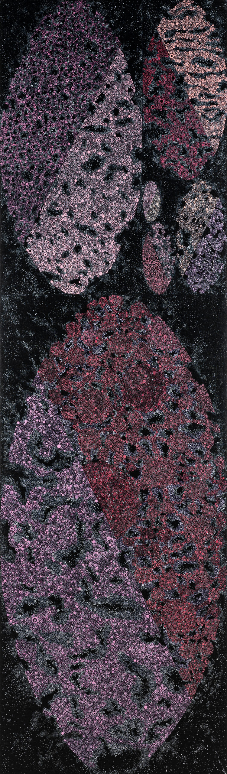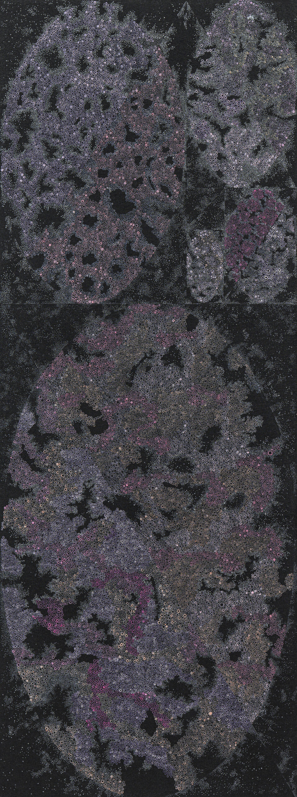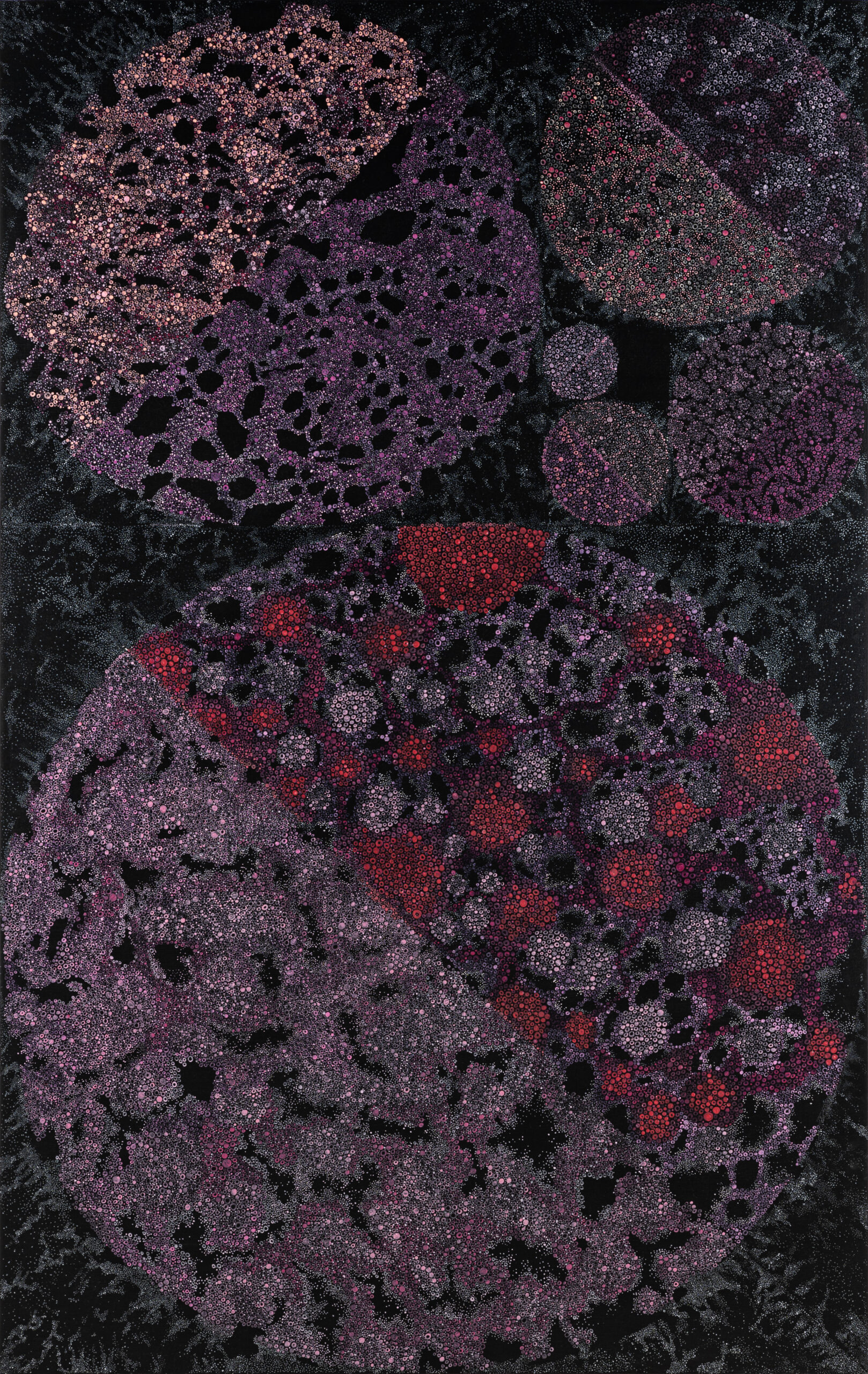 반복적으로 그려진 비정형적 원은 무수히 많은 기준이 생성과 소멸을 반복하는 과정을 통해 모호한 경계의 형태로 나타난다. 이 모호한 기준은 살아온 환경, 경험, 지식의 무의식적 활동이고, 그것이 나를 만드는 과정의 한 축이자, 역사이다.
