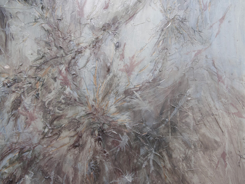 나는 도시의 소외된 생물이나 개인적으로 감각하는 애정의 부재에서 이미지를 가져온다. 집을 잃고 떠도는 생물들, 번화한 것들 사이에서 느껴지는 인간의 나약함이나 외로움, 미래에 대한 의구심과 같은 경험의 파편을 토대로 드로잉을 이어간다. 그 순간을 마주할 때 경험하는 멜랑꼴리는 부정적인 자극으로 다가온다. 그러나 이따금 나의 마음 깊은 곳에 사랑이 있다는 사실을 깨달을 때, 우리 안에 보이지 않는 어떤 에너지가 존재한다고 믿게 된다. 한 걸음 뒤에서 이 시대를 바라보면 무리 밖의 것들은 가볍게만 느껴져 자국을 남기기 쉽지 않아 보인다. 그러나 그 자국을 기억해야 한다. 따라서 나는 마치 패턴을 직조하는 것처럼 물질을 교차하고 엮거나, 때로는 문지르고 새기는 행위로 회화를 제작한다.
