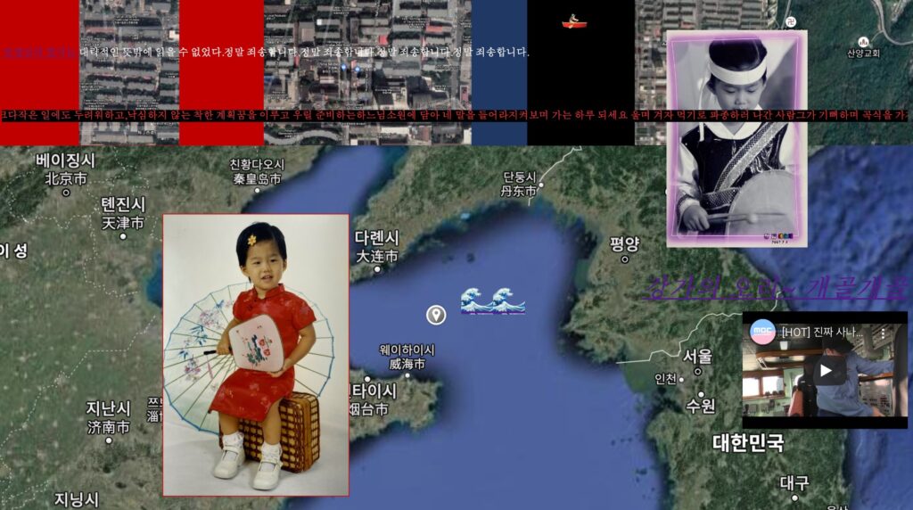 날마다 반복되는 삶의 시간은 절대적인 시간 개념 안에서도 개별적 경험에 따라 다르게 흘러간다. 나는 2000년 8월 23일 23:16에 중국에서 태어났으며, 열 살이 되던 해 시차를 고려하여 8월 24일로 주민등록번호를 변경한 경험이 있다. 사라진 한 시간은 나에게 무의미함, 허무함, 공허함과 같은 감정을 유발하였으며, 동시에 나의 존재 근거에 대해 성찰하는 계기가 되었다. 중국과 한국, 그 어디에도 속하지 못한 채 나는 황해 속을 유영한다.