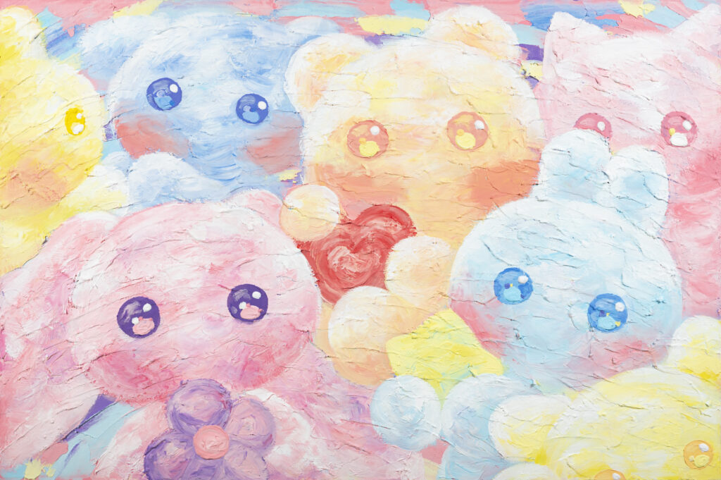 수많은 애정을 담은 인형으로 관객에게 다가가고자 한다. 인격을 부여한 인형은 파스텔 색조의 알록달록한 부드러운 색감으로 캔버스에 나타난다. 자신이 생각하는 소중함을 품은 채 각자의 방식으로 소소한 행운과 애정을 전달해 주고 있다.