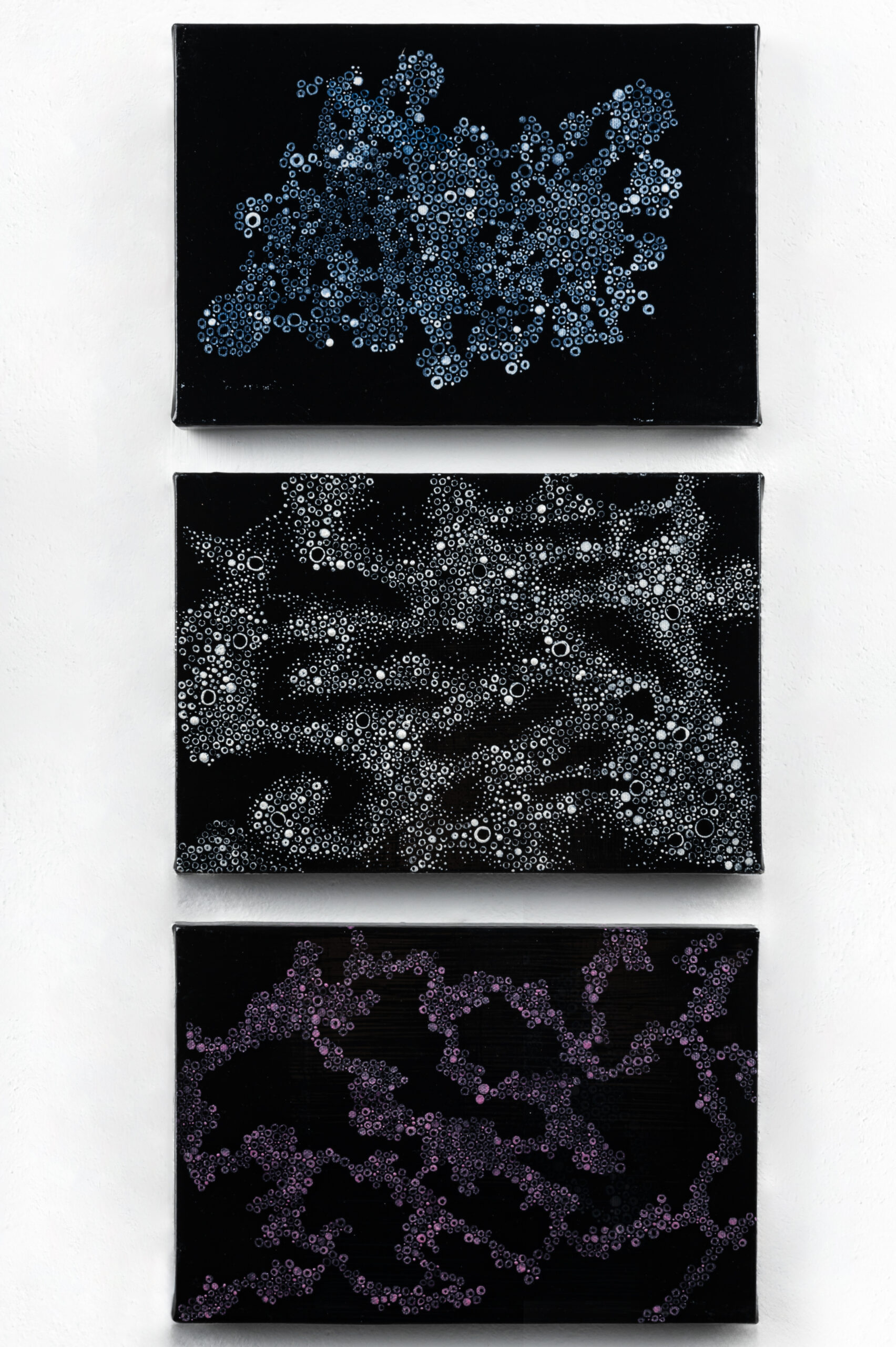 또한, 검정 화면에 반짝이는 물감은 자개를 떠올리게 하는데, 어릴 적 할머니의 자개농에서 영감을 받았다. 자개 특유의 빛깔은 균형과 이상을 시각적으로 표현한다. 검정 화면에서 각각이 고유의 빛을 내는 원은 여러 경계에서 균형적으로 살아가는 이상적인 기준을 상징한다.