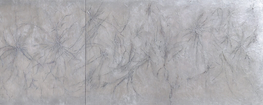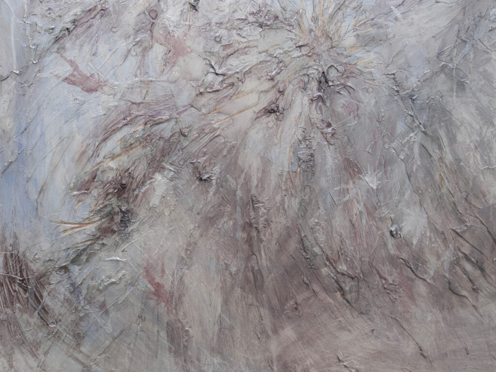 나는 도시의 소외된 생물이나 개인적으로 감각하는 애정의 부재에서 이미지를 가져온다. 집을 잃고 떠도는 생물들, 번화한 것들 사이에서 느껴지는 인간의 나약함이나 외로움, 미래에 대한 의구심과 같은 경험의 파편을 토대로 드로잉을 이어간다. 그 순간을 마주할 때 경험하는 멜랑꼴리는 부정적인 자극으로 다가온다. 그러나 이따금 나의 마음 깊은 곳에 사랑이 있다는 사실을 깨달을 때, 우리 안에 보이지 않는 어떤 에너지가 존재한다고 믿게 된다. 한 걸음 뒤에서 이 시대를 바라보면 무리 밖의 것들은 가볍게만 느껴져 자국을 남기기 쉽지 않아 보인다. 그러나 그 자국을 기억해야 한다. 따라서 나는 마치 패턴을 직조하는 것처럼 물질을 교차하고 엮거나, 때로는 문지르고 새기는 행위로 회화를 제작한다.