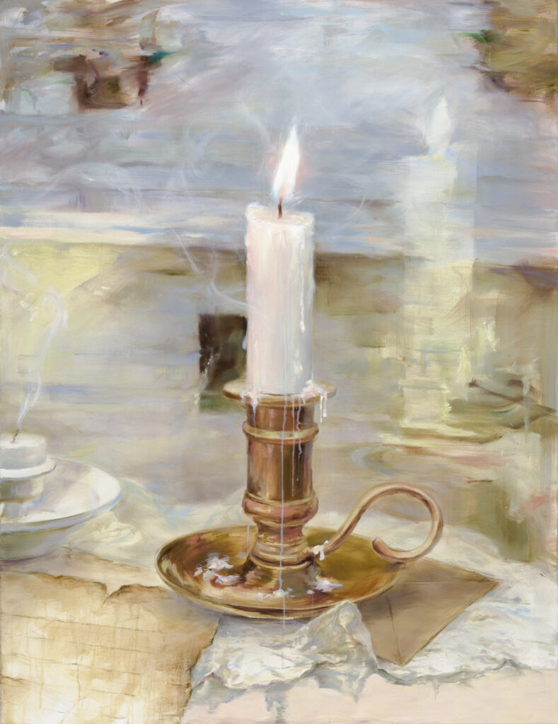 작가에게 촛대와 재, 불빛은 감정의 소멸과 재탄생을 나타내는 상징적 이미지이다. 촛농이 되어 녹아내린 자리에, 여전히 나를 비추는 수많은 불빛이 남아 있다. 그 불빛들은 내 곁에서 아련히 아른거리며, 내가 앞으로 나아갈 수 있도록 힘을 주는 존재들로 자리한다. 소멸된 감정의 잔재 속에서 새로운 감정이 피어나는 것처럼, 이 불빛들은 나를 지탱해 주는 원동력이자, 지나온 시간의 가치와 의미를 되새기게 하는 소중한 빛이다.